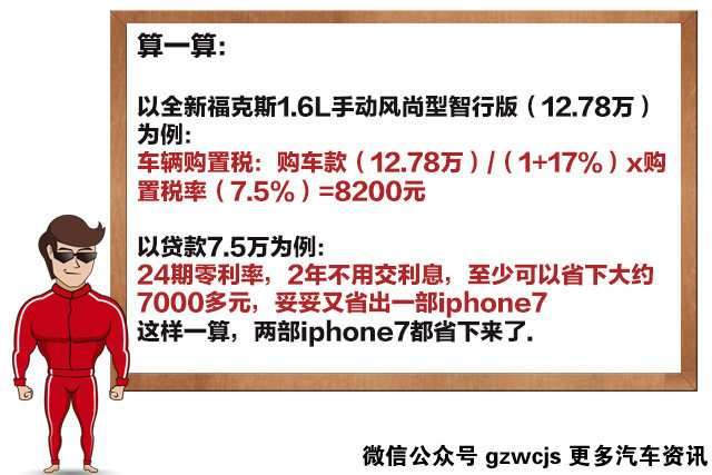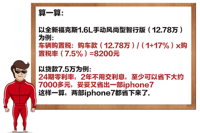 说了这么多,现在你还在为抢不到车票唉声叹气吗?现在教授再给你放大招,即日起至1月31日,购全新福克斯、福睿斯,可以享购置税全免,更可享24期零利率。单单免购置税、24期零利率就能为车主省下不低于15000元。