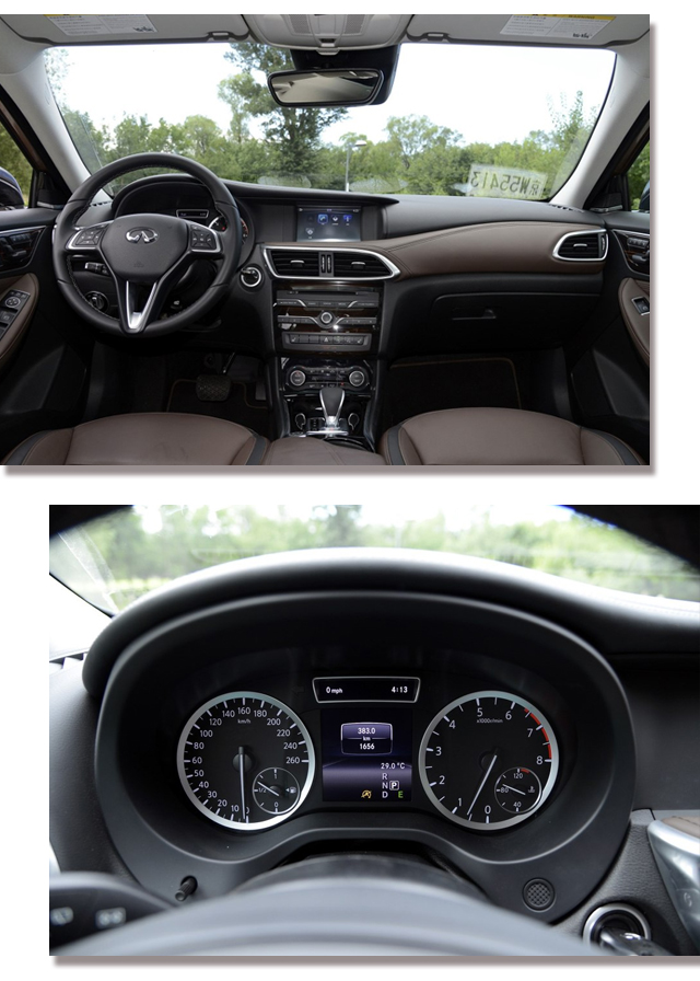 当你进入车内,倘若将方向盘上面的英菲尼迪标遮住,你绝对会犯浑这到底是台奔驰还是英菲尼迪?但当你下意识去拨动方向盘旁边的怀挡时会让你瞬间回归,嗯这不是奔驰。内饰的配色以及风格都是东方人所喜爱的,上黑浅白的配色让教授感觉赏心悦目,嗯~还是日韩风比较符合审美,欧美太重口味了。