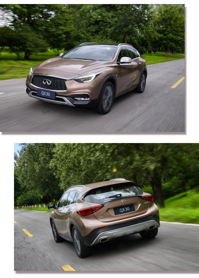 “教授你上面推荐的都是国产货,我还是觉得国外的月亮比较圆”你还别说进口车的情节在我们国内还是挺普遍的,买个豪华品牌不是进口车宁可不买的大有人在。那么对于那些爱好进口车的网友这款英菲尼迪QX30绝对就是你的 “菜”了。
