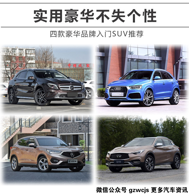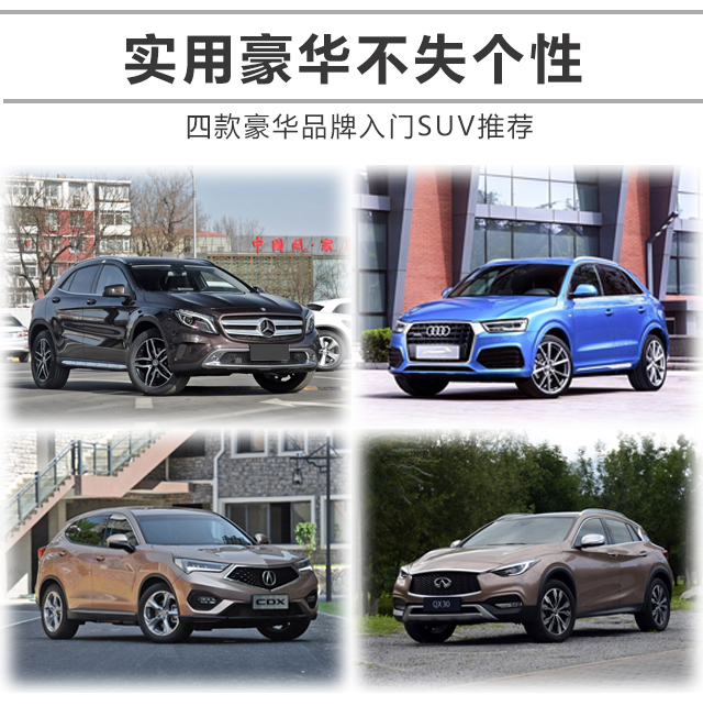 总结:综上四台车各有各的特点,奔驰GLA精准的内饰以及德系浓浓的豪华车氛围让感觉是这四台车中最具有豪华氛围的车型。奥迪Q3大量高科技配置的堆砌、外加神似大哥Q5的家族化设计让它看起来更高端大气。而CDX则保持了本田一向对豪华车的理解,既要内饰豪华又要前卫并且动力系统也是这几台车里最富有激情的。QX30简单一句话说就是一款日系的奔驰,外观内饰的设计更符合东方人的审美,而驾驶感受却是地地道道的欧系风格,买一台车感受两个品牌的精髓没什么不好的。