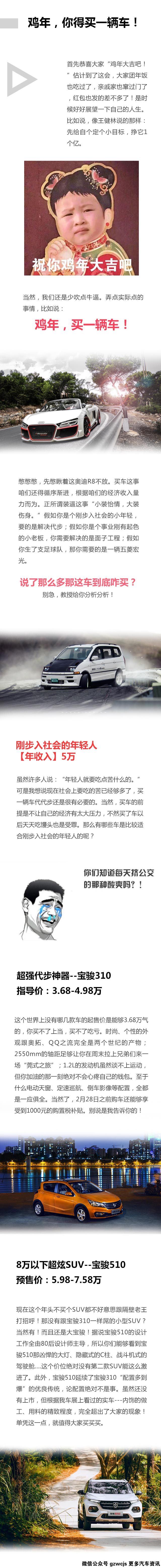 教授我说了这么多,其实并不是说大家只能买这么几辆车,而是希望大家在新的一年里设立一个目标,买一辆车让自己跟家人生活过得更好更幸福!假如你说你连几万块的储蓄都没有怎么办?没关系,只要有信心,搬砖也能发家致富!教授我就是这么过来的!所以,大伙新的一年,大家都赶紧打鸡血般的挣钱吧!
