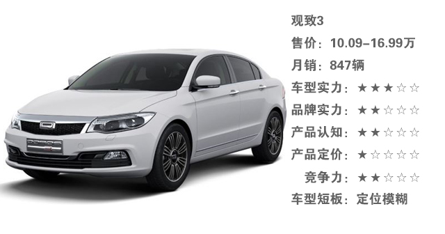定位定价问题,虽然车很好,但是定位模糊,而且定价较高。即使是因为观致在用料方面很足,成本降不下来,但在众多国人的眼中国产车就是国产车,你不在价格方面拿点诚意出来谁会花上十多万买这样A级车呢?同级别的国产车卖出合资车的价钱,注定卖不好,而且同价位我还能买大更大、更大气、配置更高的国产B级车!