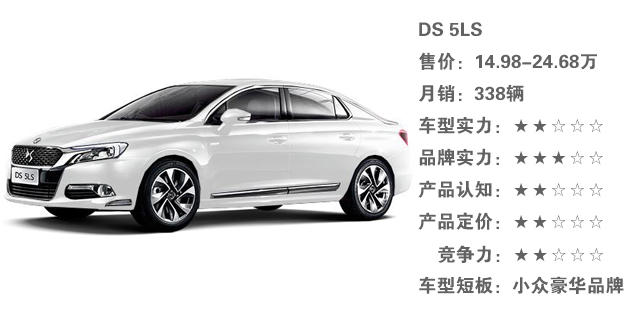 一开始DS以纯进口的身份进入到了中国,但是法国人的浪漫中国人哪儿会懂?国产后的DS 5LS以“低价豪华车”的身份重新打入中国市场,但是品牌前期缺乏宣传口碑、产品线不丰富的情况下,依旧无法让DS这个品牌起死回生。当然啦,4S门店极少、保养费较高的问题也是一个大问题!