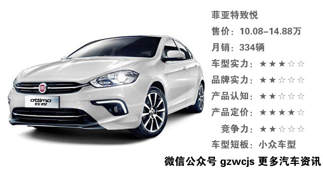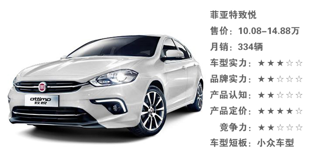 菲亚特一直以来的品质都很不错,为啥卖不好?跟自身的竞争力有关,前几年与广汽合作生产菲翔等车型,但是你能发现广汽菲亚特旗下仅有菲翔和致悦两款车型,更气人的是你可以把这两台车当成一个车型来看,产品线过少,车型常年没新款,即便车型性价比十足,但是依然只会出现在消费者所遗忘的名单中。
