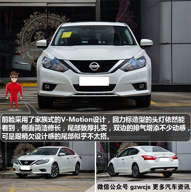 天籁向来以舒适性著称,素有“日产大沙发”的称号,在乘坐舒适性方面颇有建树。先看看外观,天籁相对旧款的变化还是比较明显的,从一个稳重的大叔,变成一名更有活力的年轻人。前脸采用了家族式的V-Motion设计,回力标造型的头灯依然能看到,侧面简洁修长,尾部敦厚扎实,双边的排气增添不少动感,可是跟稍欠设计感的尾部似乎不太搭。