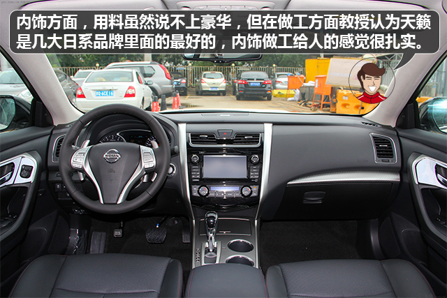 内饰方面,用料虽然说不上豪华,但在做工方面教授认为天籁是几大日系品牌里面的最好的,内饰做工给人的感觉很扎实。方向盘也采用真皮包裹以及提供了多功能按键和换挡拨片,多媒体系统的功能也包含了手机互联、导航等等,足够丰富。要说槽点就是这套内饰的布局新鲜感不够,相对旧款的变化不大。