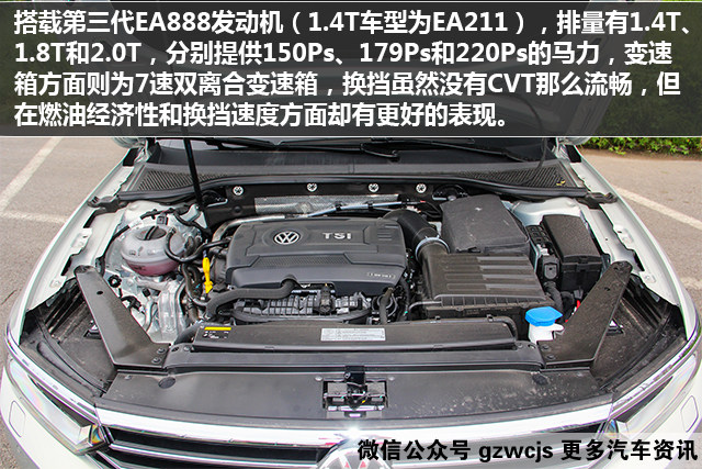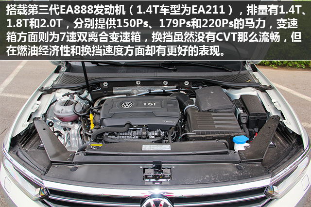 动力方面,搭载第三代EA888发动机(1.4T车型为EA211),排量有1.4T、1.8T和2.0T,分别提供150Ps、179Ps和220Ps的马力,变速箱方面则为7速双离合变速箱,换挡虽然没有CVT那么流畅,但在燃油经济性和换挡速度方面却有更好的表现。依教授所见,1.4T版本的动力也是足够的,毕竟 有250N·m的扭矩,日常的走走停停不会让你觉得很乏力。