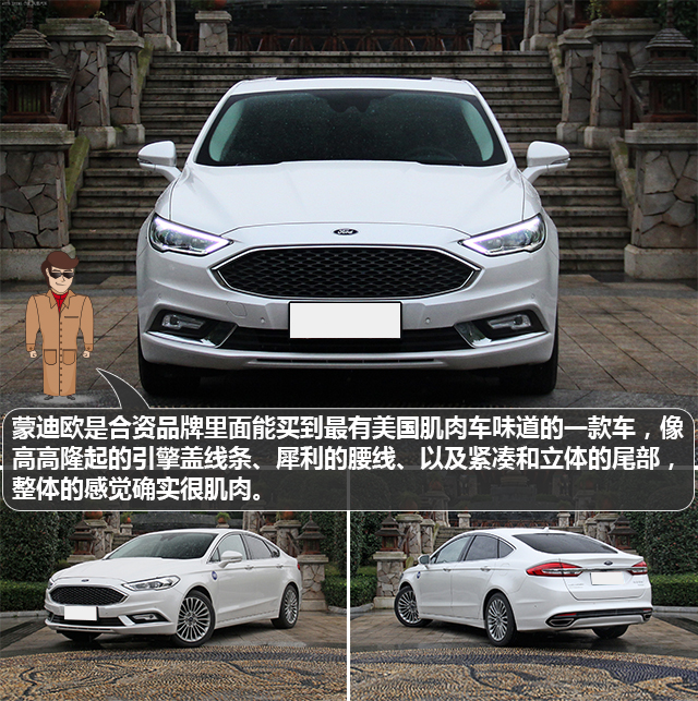 在教授看来,蒙迪欧是合资品牌里面能买到最有美国肌肉车味道的一款车,像高高隆起的引擎盖线条、犀利的腰线、以及紧凑和立体的尾部,整体的感觉确实很肌肉,甚至有人在车头贴上野马的标签,还能一定程度上的以假乱真。所以对美系肌肉车有特殊情怀的人购买蒙迪欧准没错。