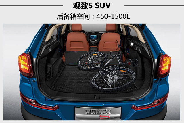 观致5 SUV后备箱常规容量达到450L,日常载物没有问题,如果要搬运大件物品可以将后排座椅放倒,一个容量达1500L的平整大空间瞬间形成,别说装年货,就算搬个家也绰绰有余。不仅如此,观致5 SUV高配车型还配备了电动后备箱功能,给提拿物品提供了更多的便利性。