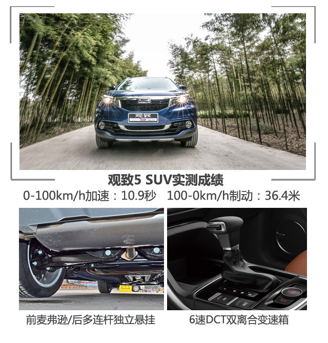而“稳”则体现在观致5 SUV的驾驶质感上,其底盘调校颇有欧系车的感觉,高速沉稳且滤震出色。即便遇到乡下的颠簸路面,悬挂的回弹速度能够保证余震能被快速吸收,乘客也不会被颠得七荤八素。再加上灵活但不敏感的转向手感以及平顺的换挡动作,就算是新手也能开出老司机的感觉。