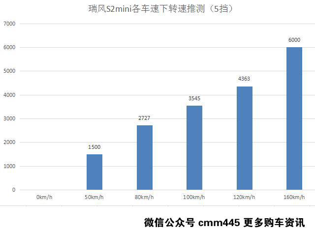 1.3L发动机最大功率99马力,最大扭矩126牛米,推动1060kg的瑞风S2mini最高时速能够达到160km/h,这样的最高时速对于高速行驶来说还是显得有些太低,假设瑞风S2mini在转速6000转时达到最高时速,40km/h时5挡转速1500转。因为手动挡车型的5挡速度与转速比例是一定的,所以可以大致推算出瑞风S2mini时速100km/h时转速为3545转,120km/h时转速为4363转,这时候噪音也就可想而知了。因此高速还是老实跑100km/h车速吧。当然小排量发动机高速吵是一个普遍问题,不止是瑞风S2mini如此,但是不擅长高速也是必须承认的事实。