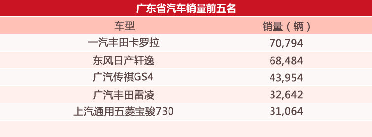 广东作为全国GDP的顶梁柱之一,又是沿海地区,经济贸易自然杠杠的,这也无形中带动了汽车工业的发展。再看具体热销车型,轩逸和雷凌的大本营虽然在广东,却也斗不过名声足够响亮的卡罗拉,毕竟一汽丰田在渠道布局上已经相当完善。自主品牌方面,传祺GS4占据着地利,而宝骏730在实用性上很符合精打细算的广东消费者。
