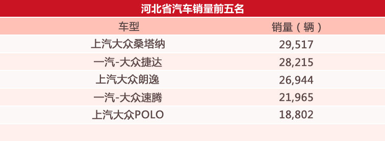 不得不说河北人民真的是大众的忠实拥趸,前五名全是大众。排名一二的是孪生兄弟桑塔纳以及捷达,而POLO则首次入榜。小型车的市场一度被紧凑型车压榨,但最近却有回暖现象,最典型的例子就是宝骏310的推出没一会就把POLO给超越了,便宜实惠才是王道啊。