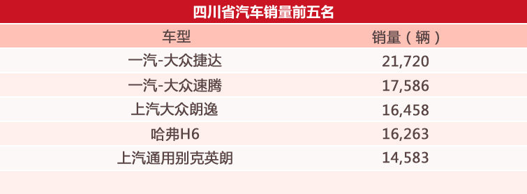 一汽大众的第三工厂就建在四川,在地利因素的推动下,捷达与速腾顺利获得第一二名,朗逸作为上汽大众的一员算得上是虎口夺食。哈弗H6则是唯一一个入榜的自主品牌车型,但好歹也把英朗给超越了。