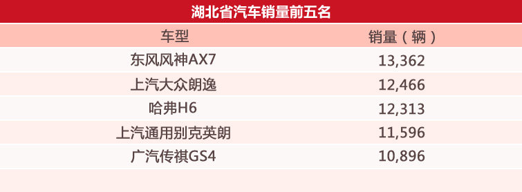 到了湖北这销量就递减了不少,卖最好的AX7也就只有13362辆。不过在这个省份自主品牌再次发威,且全是SUV车型,最大原因还是由于湖北多山地、丘陵地貌。而本次的冠军东风风神AX7之所以能拿到冠军,同样得益于基地优势,只是它的小弟AX5已经转移到常州基地生产。