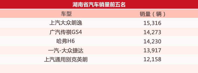 还是与四川一样,湖南作为上汽大众朗逸的生产基地,其销量表现被带动了不少,拿下第一并不是什么难事。让人比较惊喜的是传祺GS4再次入榜,难不成是与广东离得比较近的关系?