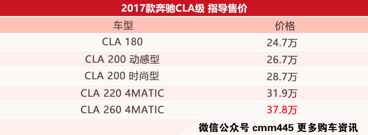 个性时尚、动感的进口奔驰CLA级在前两天推出了2017款车型。新款车型最大看点在于新增了CLA 180入门车型,现在的起售价仅为24.7万(比以前的起售价降低了2万元)。