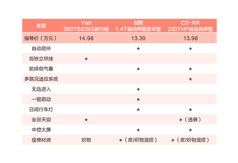 斯柯达Yeti虽然空间有优势,但价格和配置方面仍然落后于两位小鲜肉,而且丑萌的造型,也确实不那么讨好;