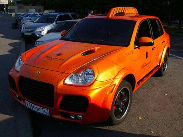 卡宴经橙色涂装后,以计程车的身份行走在俄罗斯首都莫斯科的街头上,夺目的热情橙色绝对是莫斯科冬日中的一股暖流。