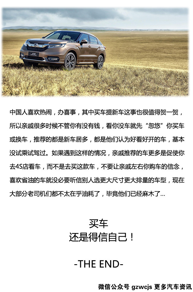 总结:想买车要听意见,除了找在汽车行业工作的亲戚朋友之外,和身边的老司机们多交流是准没错的,因为他们接触汽车比较久,对于家用车的定义有一定的理解,作为家用车最终还是回归到好开省油这一原始真理,一时贪冲动买了只有外表能看的车,后期用车生活不和谐足以让你后悔,俗话有说“不听老司机言,吃亏在眼前”,当然选车买车不想吃亏,每天多看教授这个老司机的文章,也是受益良多呢!