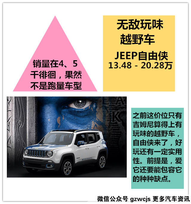 乍一看,上面这仨似乎没有太多共同点,自由侠是10来万最具个性最有玩味的SUV毋庸置疑(吉姆尼太稀有且毫无实用性可言);GS8可以算是自主品牌SUV冲击20万领域唯一成功的一位;而新X1,同级无敌手的超大尺寸和空间,在强大的实用性面前,“键盘车神”嘴里的“宝马味”也就不值一提了。他们的共同点在于做到了细分市场里的独一无二。