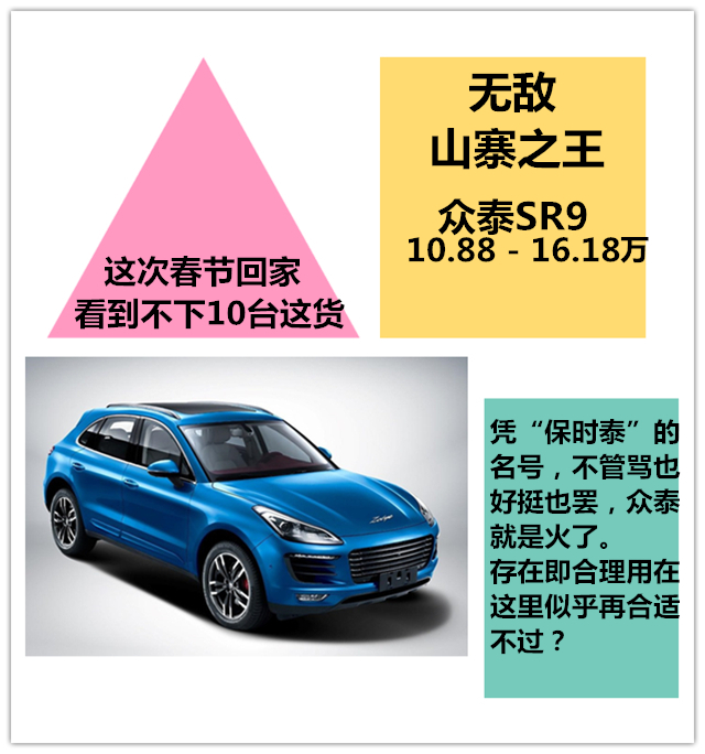 如你所料,说起无敌怎能少的了这俩货。尽管口水不断,纵然你再怎么瞧不上,但人家就是大张旗鼓的来了,并且活得很好。叫兽尊重市场,但出于对汽车本身的爱好,还是想给这俩封一个无敌山寨王的“美称”。