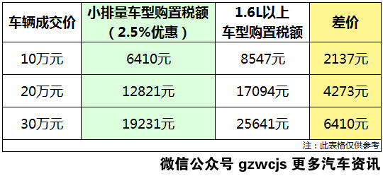 购入新车最关注不过的,就是成交价格了。而不同排量的发动机,对购车总额也会造成影响。1.6L及以下的小排量汽车购置税优惠,在2017年将继续延续减免2.5%的优惠。