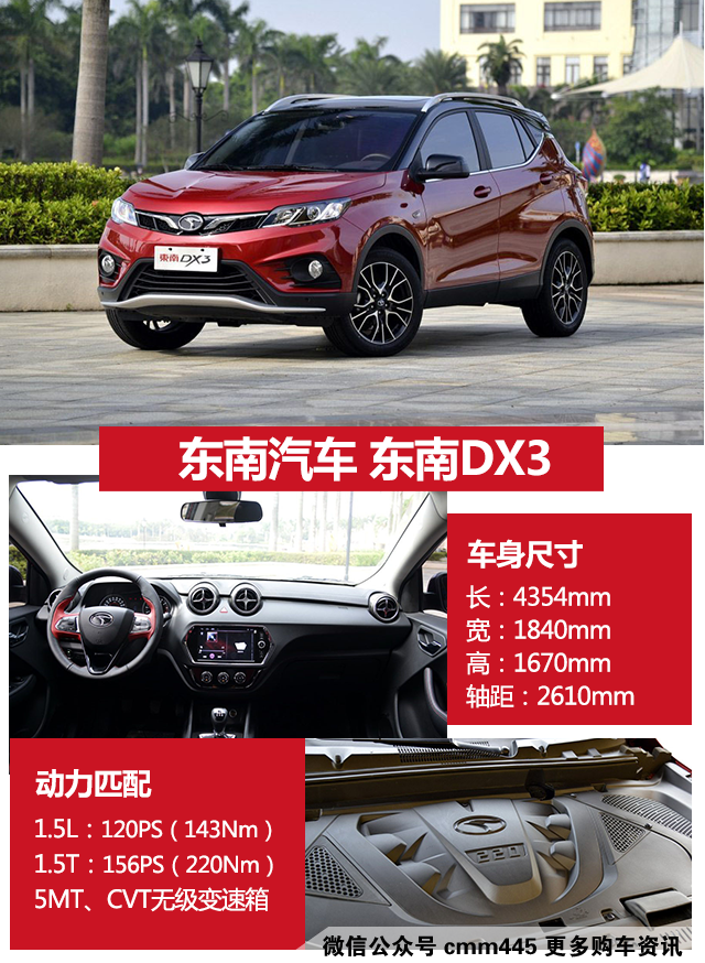 东南DX3的内饰同样出彩,造型简洁,空调出风口设计新颖,类似于飞机的涡轮式发动机。方向盘是传统的三辐式设计,四向调节更容易找到合适的驾驶姿势。动力有1.5L和1.5T两种选择,喜欢动力的话1.5T选择会更合适。此外东南DX3的底盘表现不错,五连杆后独立悬架是这个级别车型里比较少见的配置。
