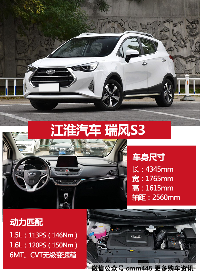 瑞风S3的内饰视觉效果不错,大屏幕竖立在中控台上,配备了倒车影像和倒车雷达。另外就是许多我们日常用车接触到的部位,瑞风S3都采用了柔软的皮革进行包裹,相比硬塑料要更具好感。动力搭载1.5L和1.6L两款发动机,匹配6挡手动和CVT无级变速箱,日常开起来动力够用但加速有些让人着急,你需要稍微耐着点性子,不过胜在足够平顺。