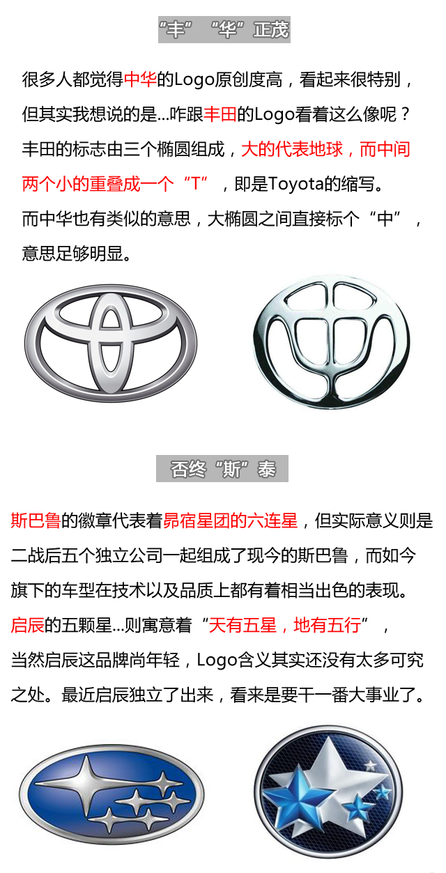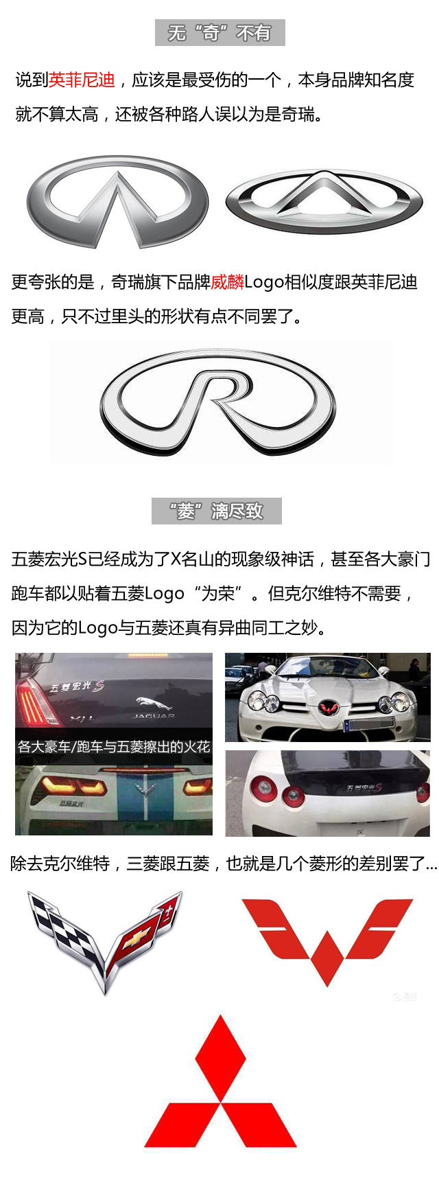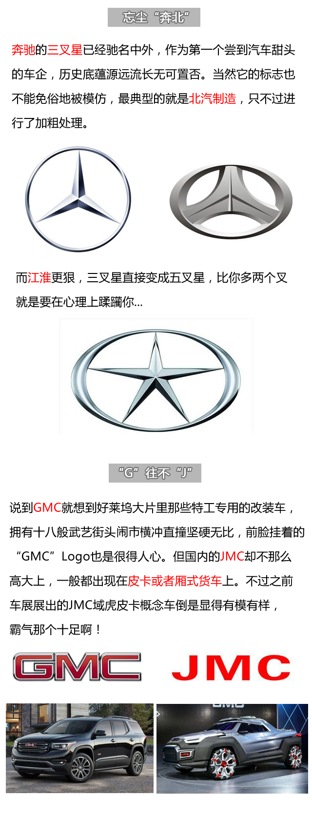 总结 :借鉴设计并非不行,最近也看到不少自主品牌都开始转换风格各种换标,打造一个真正属于自己的品牌象征。但也有不少抄上瘾的,不局限于标志连车都给抄上了,这就不值得提倡了。所以还是奉劝各位看官们擦亮眼睛,别被眼前的假象迷惑了,好好认认就不会受骗啦!
