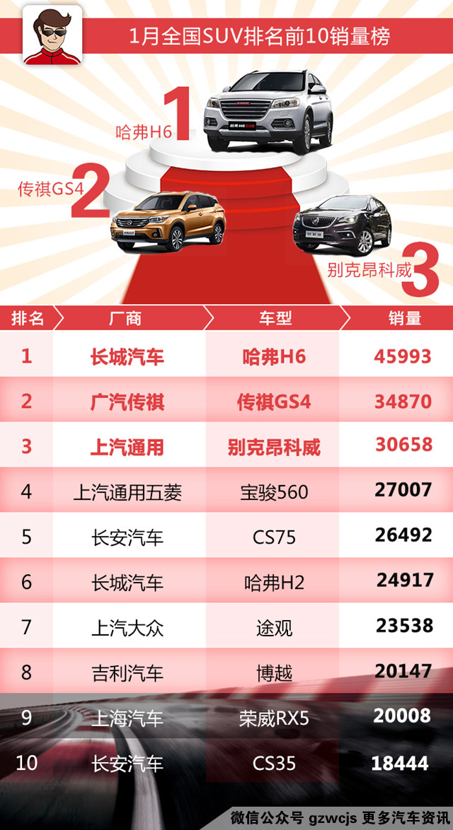 第二名再次被传祺的传奇车型GS4夺得,或许是换装AT变速箱的功劳?顺带提一句,GS8再次收获了超过9000的月销量(9418),看来春晚这波包场广告花的值。