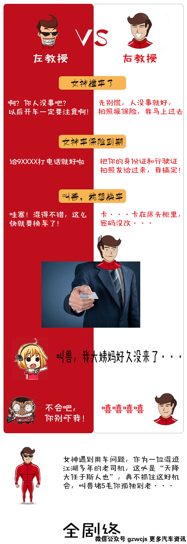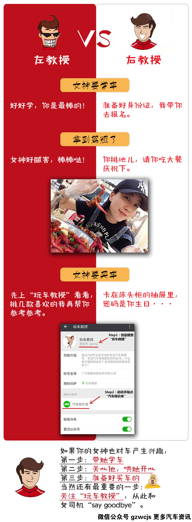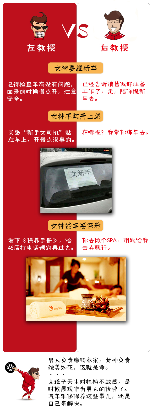 每一个女神都希望遇到“右先生”这样的人,他们会给你无微不至的关怀和照料,甚至将你的生活安排的井井有条,可幻想终究抵不过“凭什么”这三个字,只有努力充实自己才能遇到真正的“如意先生”。买车用车同理,与其“YY”左叫兽还是右叫兽,不如每天仔细品读玩车教授的文章,保你将来买车用车都不需要求教任何人。