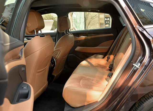 超过5米的车长,加上2905mm的轴距,乘客的后排腿部空间不必担心,只是头部空间稍显不足,而且全新君越在座椅的舒适性和支持性的处理上也比较一般。