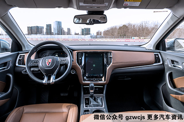 在内饰方面,荣威i6依旧采用了与荣威RX5相似的设计,中控区域被竖向放置的10.4英寸大屏幕所占据,搭载融合了车载支付宝功能的YunOS操作系统,包含导航、语音交互、远程车辆控制、4G通讯车载Wi-Fi等功能。新车中控台采用双色配色,其中竖直面采用大面积棕色皮质包裹,配以白色缝线和镀铬饰条,车内质感大幅提高,另外值得一提的是,荣威内饰的软包比例高达80%,也是同级独有的存在。