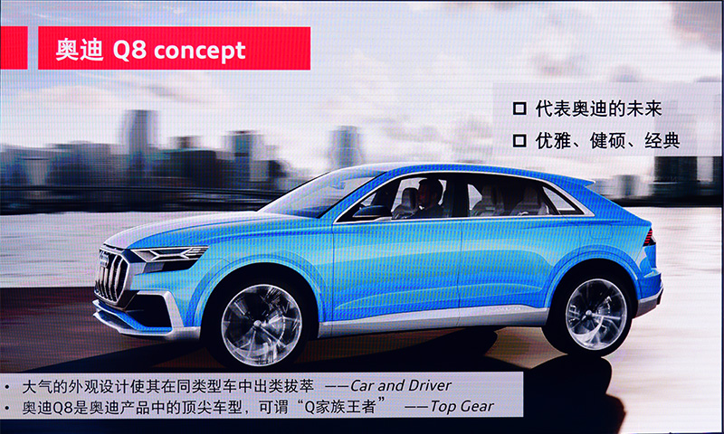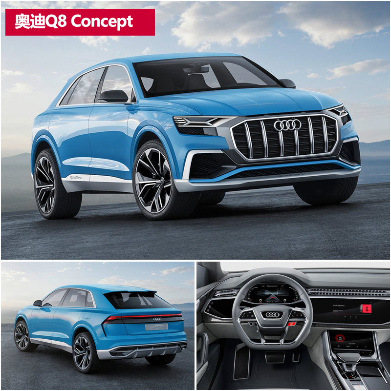 奥迪Q8概念车也会在今年亮相,它采用轿跑SUV跨界风格,有望搭载一套插电式混动系统,最大功率330kW,最大扭矩700Nm;还会有定位介乎于Q5、Q7之间的纯电动SUV,最大续航里程将超过500km。