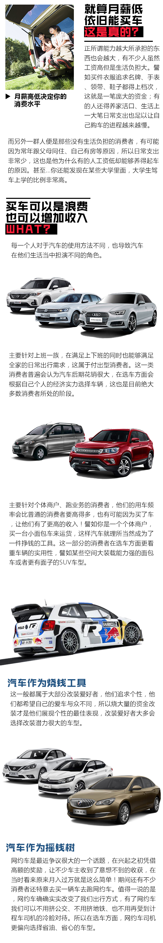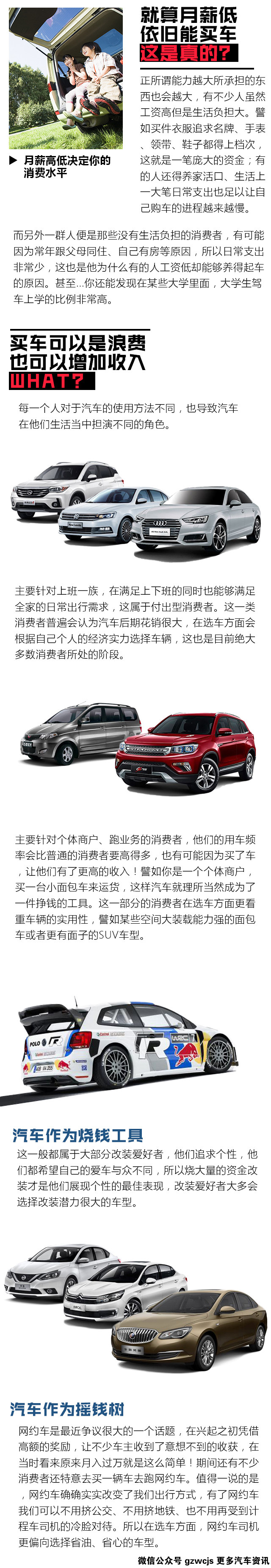 买车一定要量力而为这一句话相信你们都听得太多了,这是一句大实话!但是你却能发现这样一个问题,有的人每月收入并不低,但是他们依旧说自己买不起车;但是在众多车主当中,有的人可能月薪3000,他却成为了车主。或许有的人会说这一类人群是一群爱面子的人,月薪这么低为什么还敢买车?今天教授告诉你为什么。