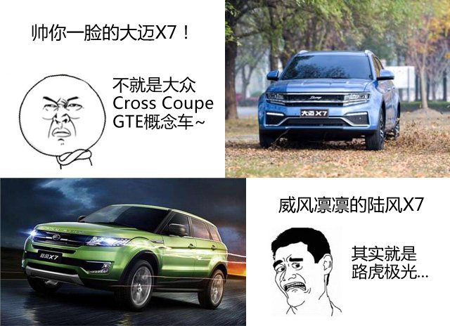当然,有正必有反,如今仍然有小部分自主品牌依旧靠着模仿而活,甚至因此大红大紫,最夸张的当属“保时泰”无疑,众泰SR9、SR7就不说了,你大众X7,阿不,大迈X7怎么还把人的概念车提前量产了?除了众泰还别忘了陆风X7这个风格突变的逗比。