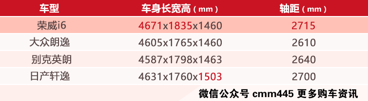 从上图的数据可以看出,荣威i6的车身尺寸与当下主流的合资紧凑型轿车相比丝毫不会显得劣势,甚至还是偏大的类型,在这个“小车往大了做、窄车往宽了做”的时代,荣威i6的车身尺寸不显得怯场,与它显宽的外观搭配起来,气质上并不输主流合资车型。