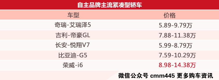 从荣威i6的定价8.98-14.38万来看,荣威i6的定位已经比其他自主品牌紧凑型三厢轿车要高出一截。