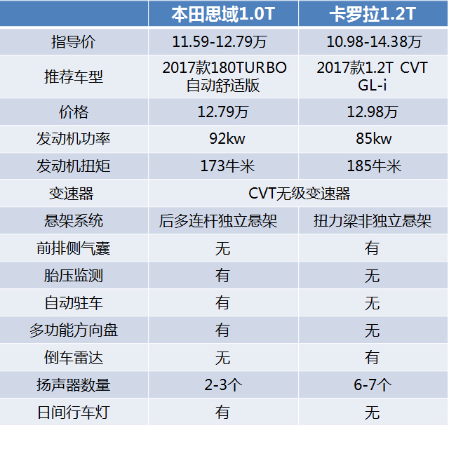 教授上面列的这两个推荐的车型,属于特别走量且性价比最高的车型版本,无论是思域的1.0T自动舒适版还是卡罗拉的1.2T GL-i版,都标配ESP车身稳定和上坡辅助功能,舒适配置都标配天窗,节油科技配置同样有发动机启停系统,剩余的配置差距,就只能看上面的配置对比图了,虽然卡罗拉没有胎压监测,多功能方向盘等,但多了一个侧气囊,扬声器也6个起,比较适合舒适驾驶家用,且卡罗拉1.2T在市场上的还有几千优惠额度,思域1.0T则比较少见,所以卡罗拉在这里掰一分。