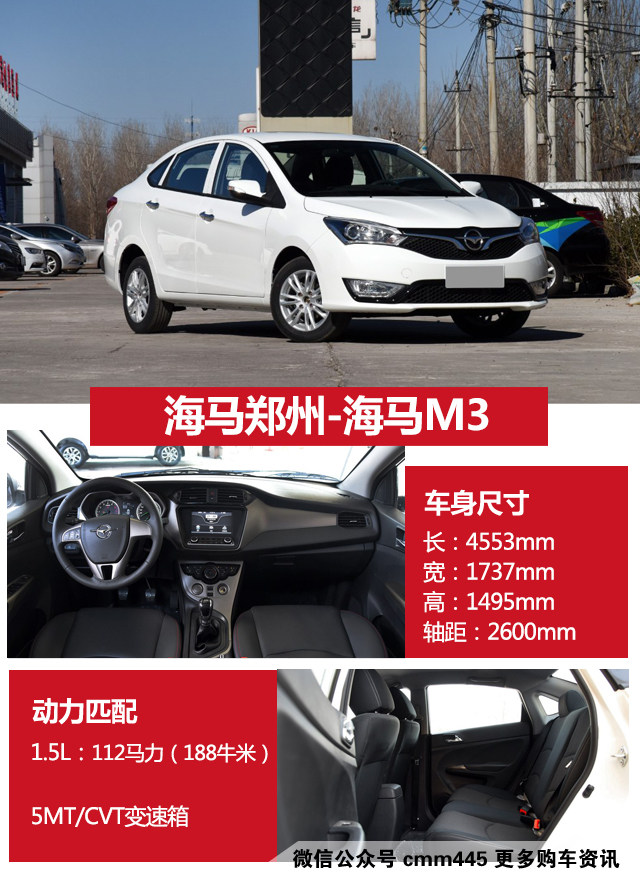 海马汽车比较有代表性的作品就是海马323了,作为时代的经典,它给人们留下了出色的家轿印象。至于这里为什么推荐海马M3这款车型呢?是因为它的CVT车型能很好满足代步为主的消费者对于自动挡车型的需求。