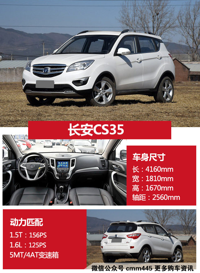 长安CS35在小型SUV市场中拥有不错的销量,其凭借着外观足够时尚年轻,赢得了不少年轻消费者的青睐,虽然长安CS35在空间表现并不算它一大亮点,但是其内饰做工、配置都表现的不错。其搭载了1.6L以及1.5T两款发动机,能丰富消费者在购车的选择,在动力表现以及操控长安CS35比上面两款车型更出色,重要的是售价还便宜。