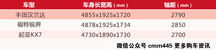 编者评语:汉兰达与锐界的性格特点也是非常明显,一个实用舒适度优秀、一个动力操控感出色,在车辆调校一向比较均衡的韩系车起亚来说,或许是一个比较中和的选择;而且就算论“身板大小”,KX7也要比汉兰达和锐界小了半圈儿,所以预计上市后定价后会更低一些。