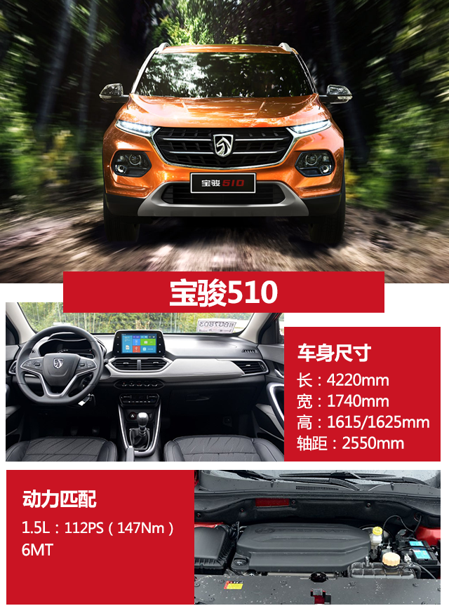 宝骏510刚出的时候,很多人都忍不住要说一句:这车好便宜好diao啊!4220×1740×1615mm的三围,最低只要5万多。这样的身材,这样的价格,完全符合90后的口味,让人忍不住要出手啊。还记得之前宝骏给人一种廉价、普通的感觉。但宝骏510这款小型SUV,不仅外观造型让人过目不忘,内饰设计和配置也相当有诚意。真的让人对宝骏有了全新的认识。如果你的预算就在7w左右,不妨试一下这款高颜值、高性价比的诚意之作。