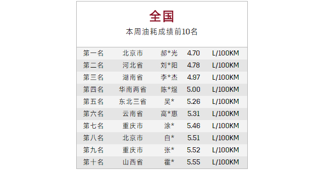 PS:出发前所有参赛的车辆均会将油耗数据清零