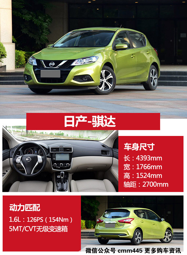 骐达是一款综合能力不错的家用两厢车,改款之后外观设计变得更加年轻动感,但内饰还是一如既往的平庸简洁。虽然车身尺寸的数据并不好看,但实际车内空间表现非常不错,头部腿部空间也有充足的余量,改款后对悬挂也进行了优化,支撑力足还能保证乘客的舒适性,高速行驶很扎实。1.6 CVT车型油耗表现能让你满意,无论是手动还是自动挡车型,综合油耗在7L左右,选择自动挡车型更划算。