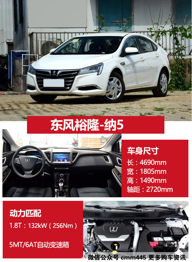 纳5这车型相对少见,这是因为它4S店数量较少导致的,但车型还是相当不错。有着同价位中相对突出的2720mm轴距,空间表现相当优秀,有着更大的腿部空间。底盘并非全独立悬架,但调校相当舒适。1.8T涡轮增压发动机最大132kw的输出功率表现一般,日常使用平顺配合6AT变速箱表现尚可。