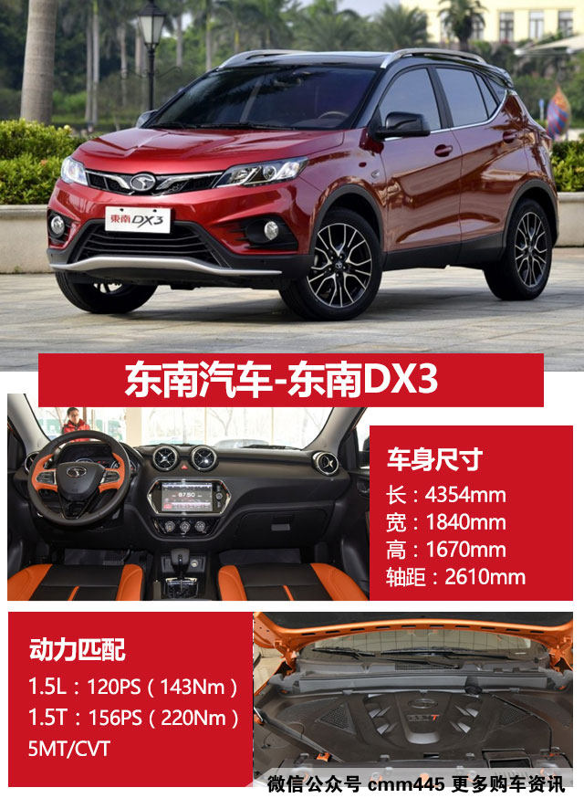 以上三款车型中,东南DX3的配置丰富,而且还提供1.5T+CVT的动力总成,对于需要自动挡的朋友来说是一个不错的选择。而宝骏510的售价更低,设计很前卫个性,适合预算不多的朋友。