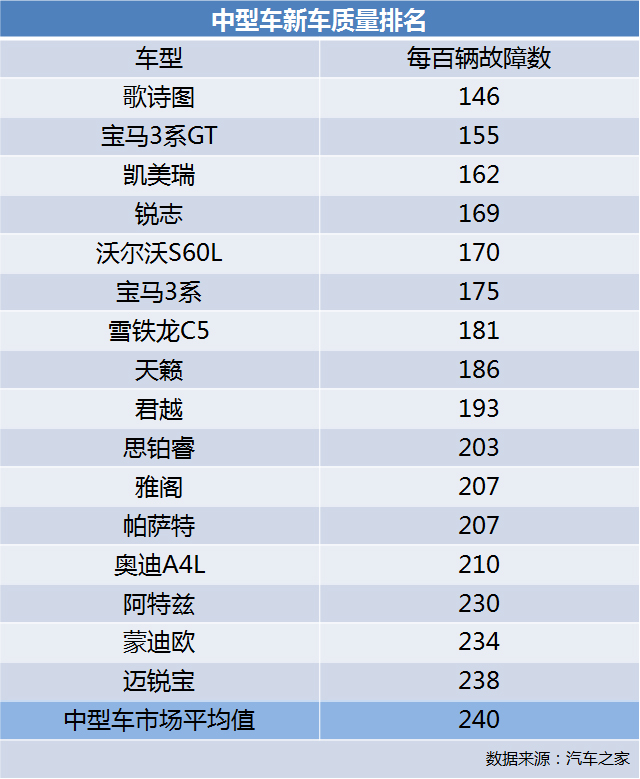 所以这一期,教授要来说的主题是,由网络数据统计而来的,2016年中型轿车质量排行榜。