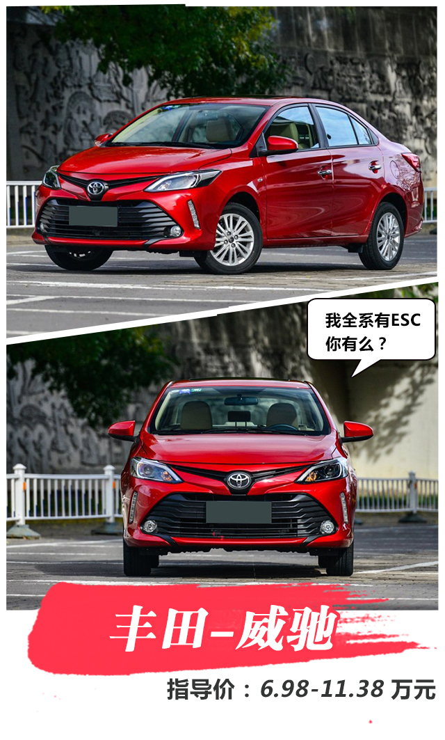 相信年轻人都不太喜欢老款威驰的造型设计,还是有些老气了。不过新款摆脱了传统的式样变得更加的年轻帅气。虽然2550mm的轴距跟对手相比有点差距,不过很多买了威驰的人都说它空间很宽敞,至少证明实用性不差。而且把老气的4AT换装CVT变速箱之后更加省油,就算最低配的1.3L车型都搭载了ESC车身稳定系统,整体的性价比还是相当出色的。
